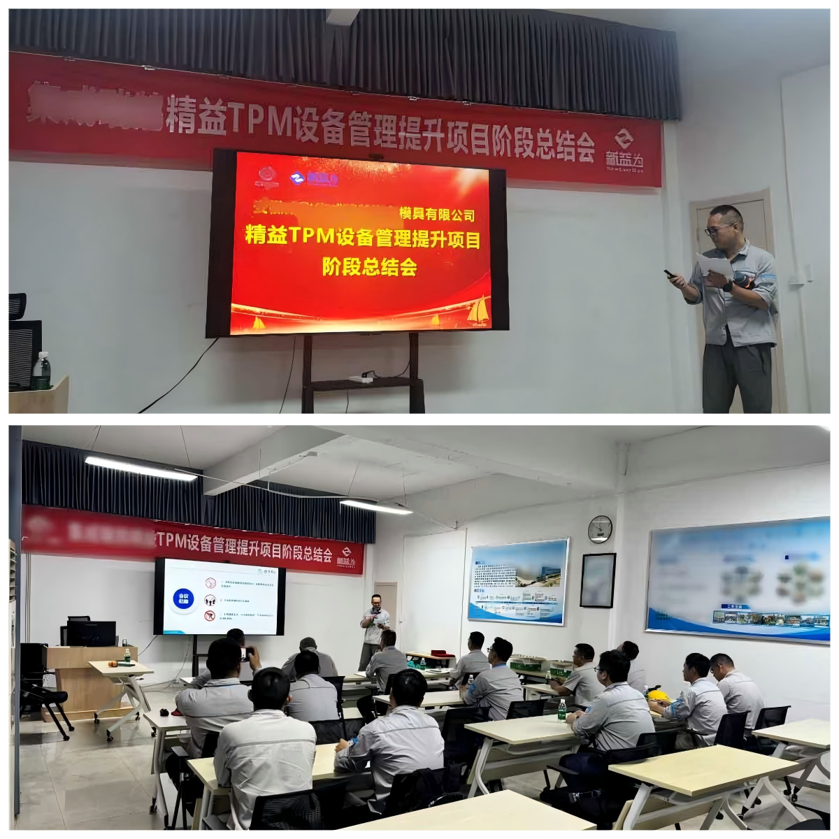 近日,安徽某汽車模具公司成功舉辦精益TPM設備管理提升項目階段總結會。會議系統回顧了項目啟動以來的推進歷程及成效,集中展示了一批優秀改善提案與課題成果,并對表現突出的團隊與個人進行了表彰。公司董總,各部門負責人、項目組成員及顧問團隊共同參會。